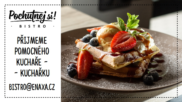 Do našeho týmu Pochutnej si! v Třinci přijmeme kolegu či kolegyni na pozici pomocný kuchař / kuchařka. Hledáme spolehlivého parťáka, který má chuť učit se nové recepty a postupy, baví ho moderní gastronomie a touží rozvíjet své kuchařské schopnosti v mladém kolektivu podobně smýšlejících nadšenců. Podrobnosti sdělíme při osobním setkání. Schůzku si domluvíme na bistro@enaxa.cz, kam nám rovnou napište i něco o sobě.
